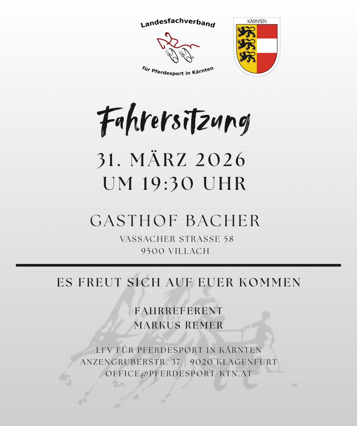 Am 31. März 2026 findet die jährliche Sitzung der Sparte Fahren statt!